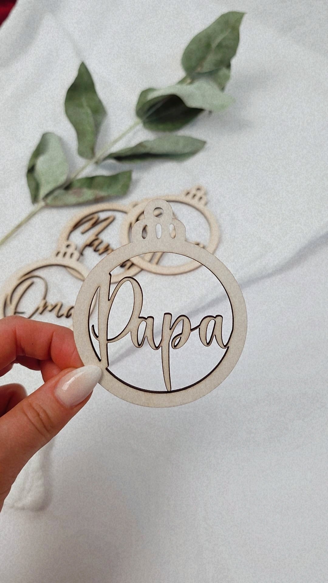 Personalisierte Weihnachtskugeln aus Holz – natürliche Deko mit deinem Wunschnamen 🎄