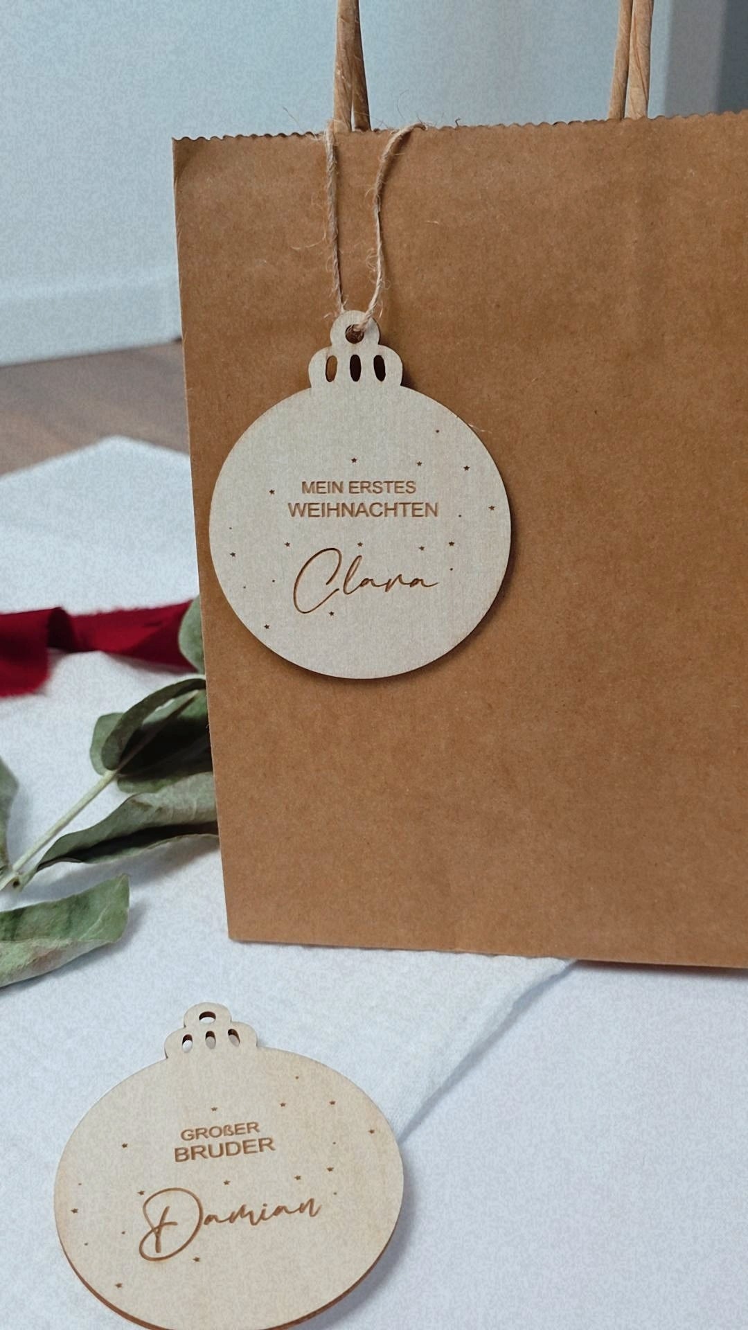 Dieser liebevoll gestaltete Holz-Weihnachtsanhänger ist eine wunderschöne Möglichkeit, die festliche Zeit ganz persönlich zu gestalten. Mit deinem Wunschtext + Namen wird jede Scheibe zu einem echten Highlight – perfekt als Christbaumschmuck, Geschenkanhänger oder als besondere Erinnerung an Ereignisse wie das erste Weihnachten eines Babys. 🌿 Handgefertigt in Deutschland – sorgsam graviert & schnell versandfertig.
