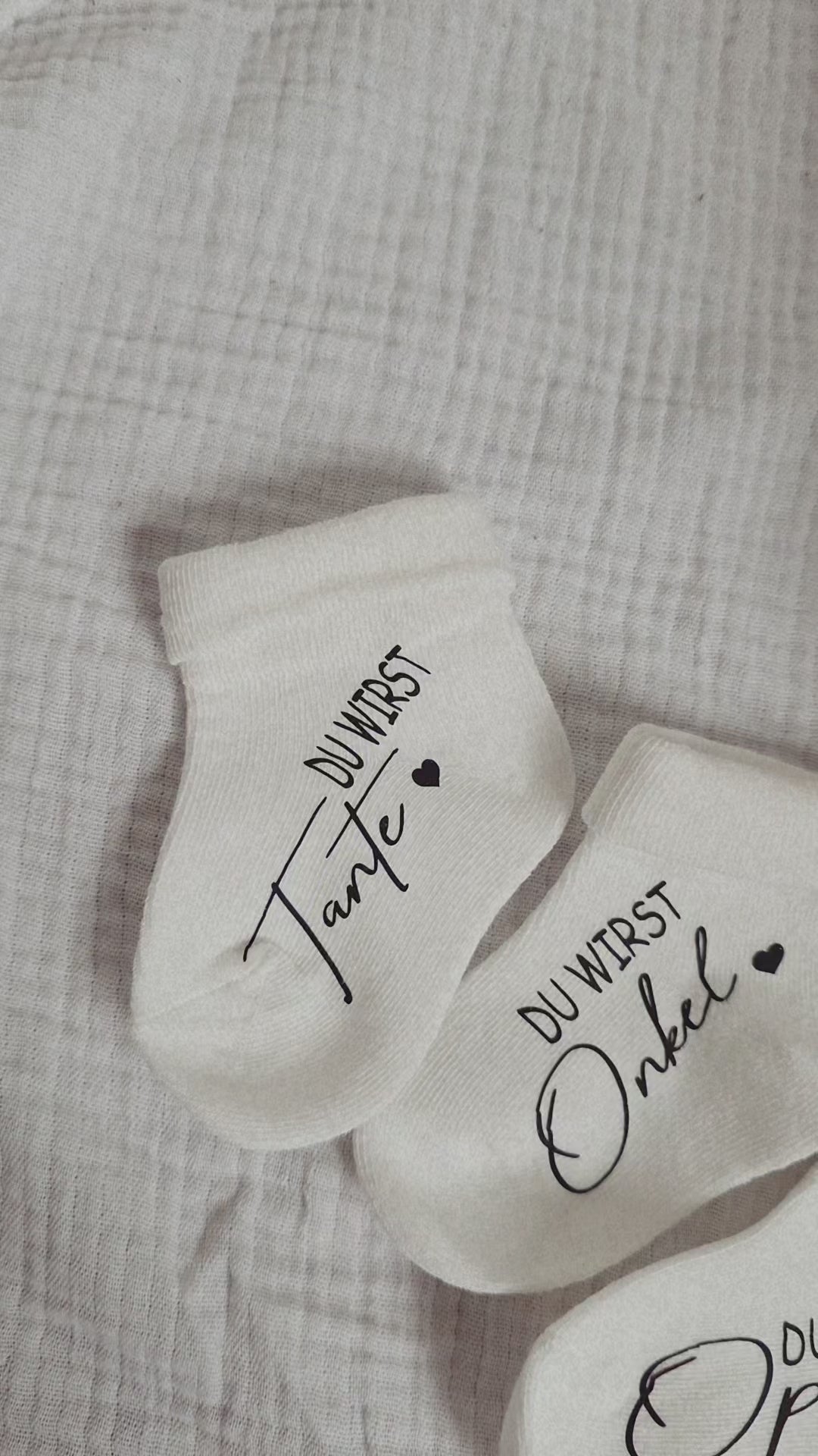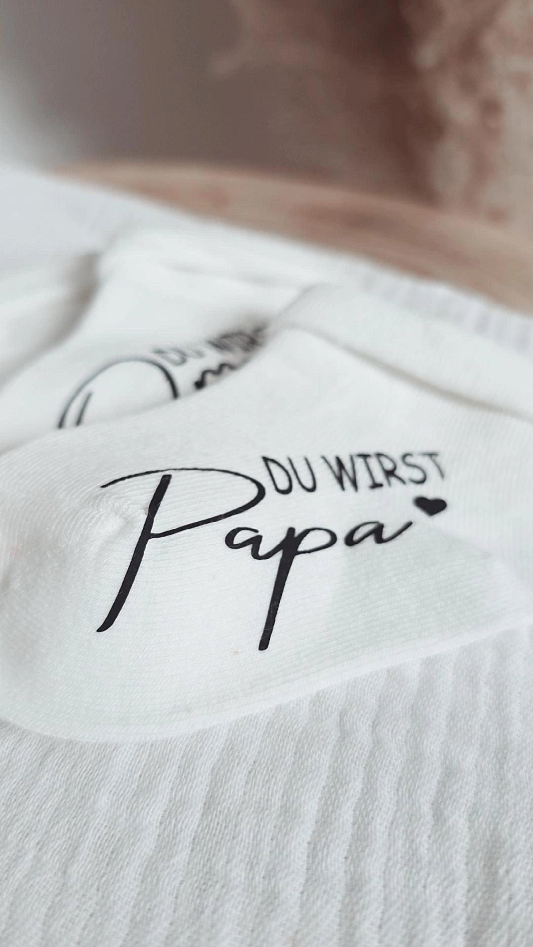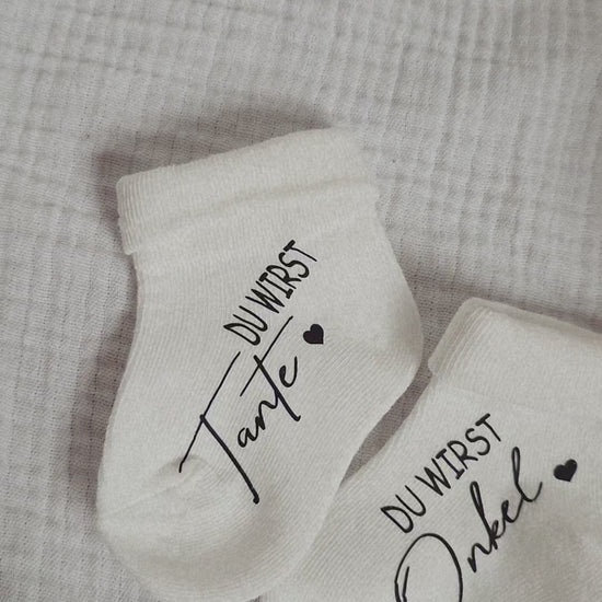 Unsere weißen Babysöckchen mit schwarzer Aufschrift sind die perfekte Idee, um die Schwangerschaft auf süße und besondere Weise zu verkünden. Ob für den werdenden Papa, die Großeltern oder die ganze Familie – diese Söckchen zaubern garantiert ein Lächeln ins Gesicht.